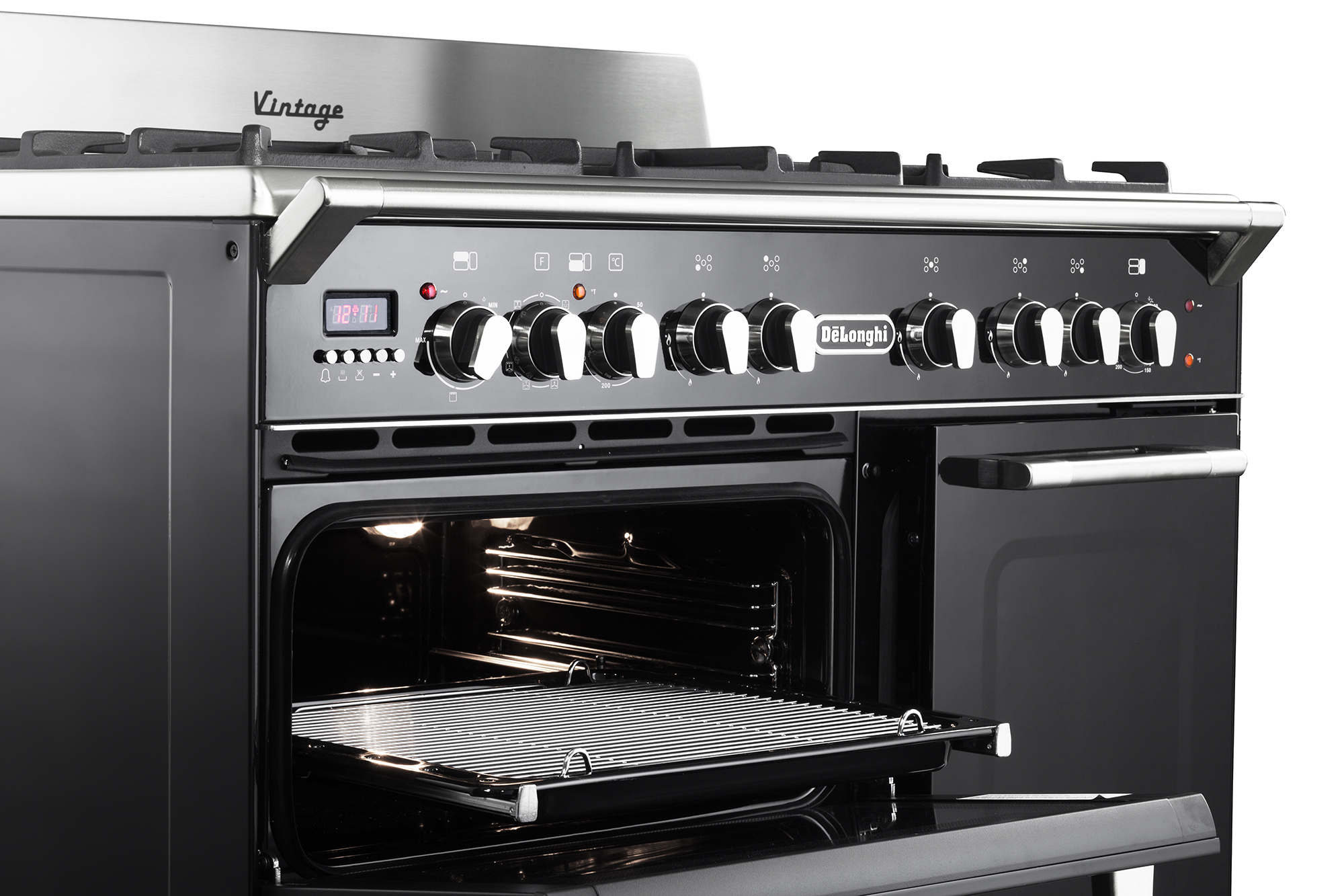 Available as a single oven cooker or with two and three cavities, De'Longhi Vintage cookers are dual fuel meaning gas hobs and grills with electric ovens.