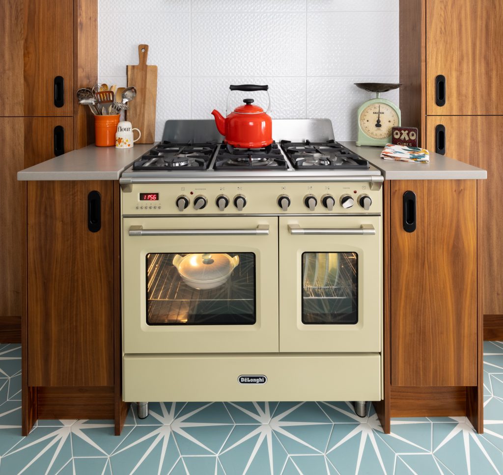 Available as a single oven cooker or with two and three cavities, De'Longhi Vintage cookers are dual fuel meaning gas hobs and grills with electric ovens.