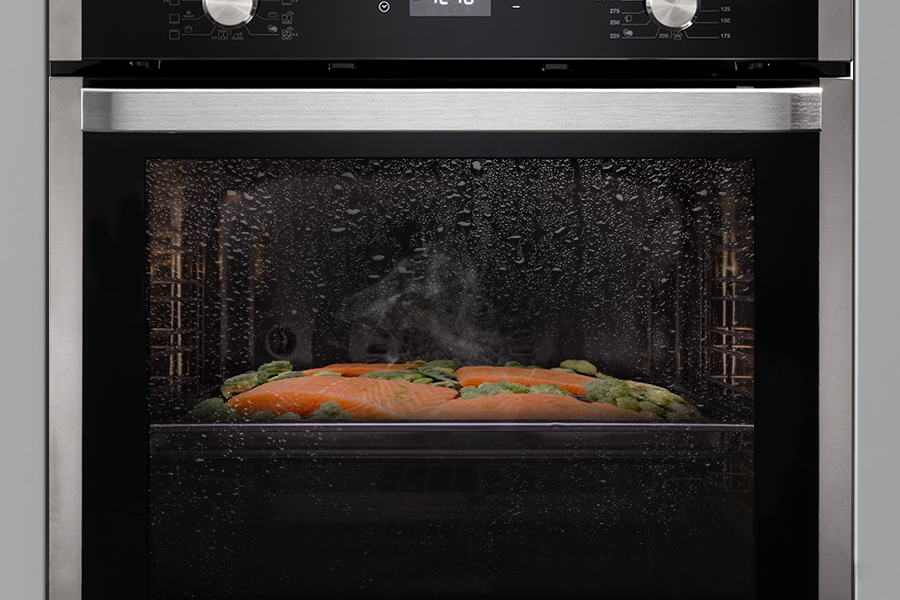 By evaporating water inside the oven, the Easy Steam function helps food to be better cooked compared to the same cooking without the addition of humidity.