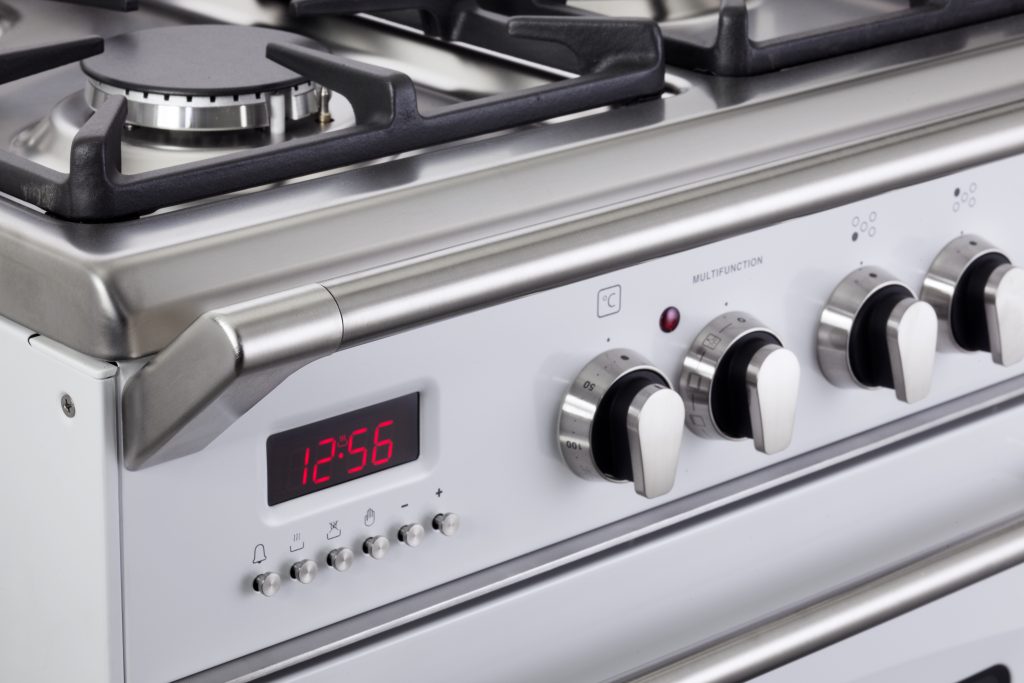 The programmable main oven has eight different functions including grill. The second oven is a conventional oven and also includes a grill.